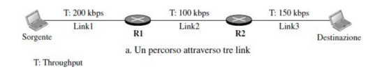 A differenza del transmission rate, il quale fornisce una misura della potenziale velocità di un link, il throughput fornisce una misura dell’effettiva velocità di un link. In generale, dunque, si ha che T < R dove T è il throughput e R è il transmission rate