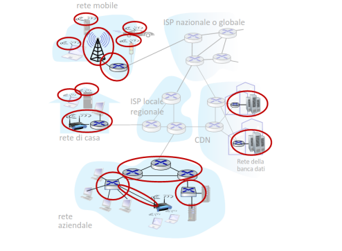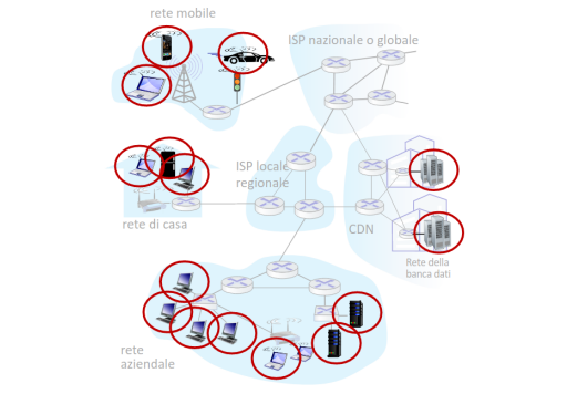 - Periferia della rete (network edge): corrispondente all’insieme di tutti i sistemi terminali connessi.