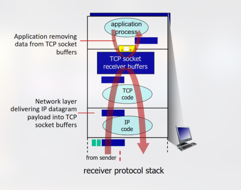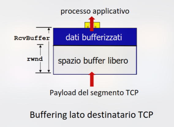 Di conseguenza, è necessario che il destinatario controlli il mittente, impedendo che quest’ultimo possa riempire il buffer del destinatario trasmettendo troppi dati velocemente. Per gestire il flusso, quindi, viene utilizzata un campo rwnd (receive window) all’interno del segmento TCP::
