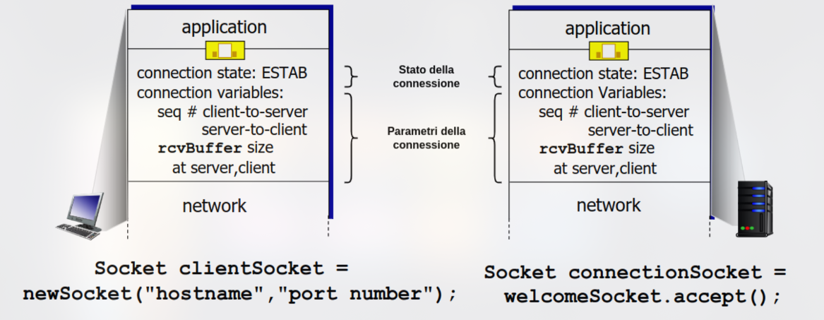 Di conseguenza, l’handshake TCP viene implementato attraverso uno scambio di 3 mes- saggi (handshake a 3 vie):